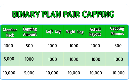A Binary Plan is a Two Legged (Left leg, Right Leg) structure used in Multi-Level Marketing where each new distributors or members are placed in either left or right sub tree. The profit margin depends entirely on your down-line team being active. That is if one of your leg is inactive, then you will not earn much money.
